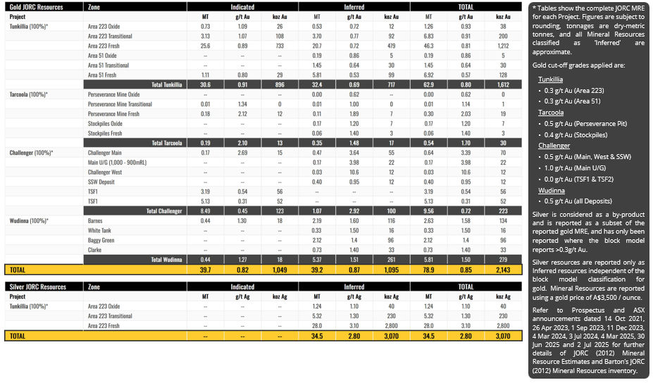 Barton total South Australian JORC Mineral Resources now 2.14Moz (78.9Mt @ 0.85g/t Au)