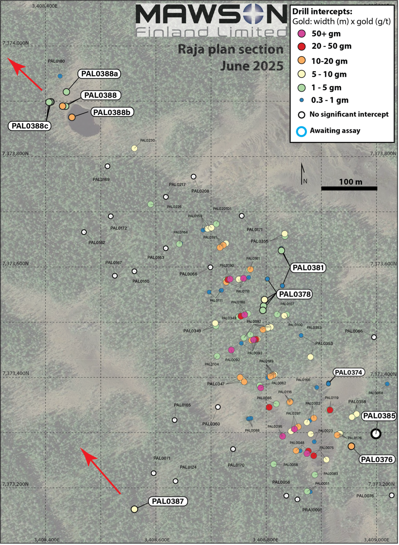 VANCOUVER, BRITISH COLUMBIA / ACCESS Newswire / July 7, 2025 / Mawson Finland Limited (“Mawson” or the “Company“) (TSX-V:MFL)(FRANKFURT:PM6) is pleased to announce results from remaining drillholes from the 2025 drilling season at the Company’s wholly-owned Rajapalot gold-cobalt project in Finland (see Figure 1, Table 1, Table 2, and Table 3).