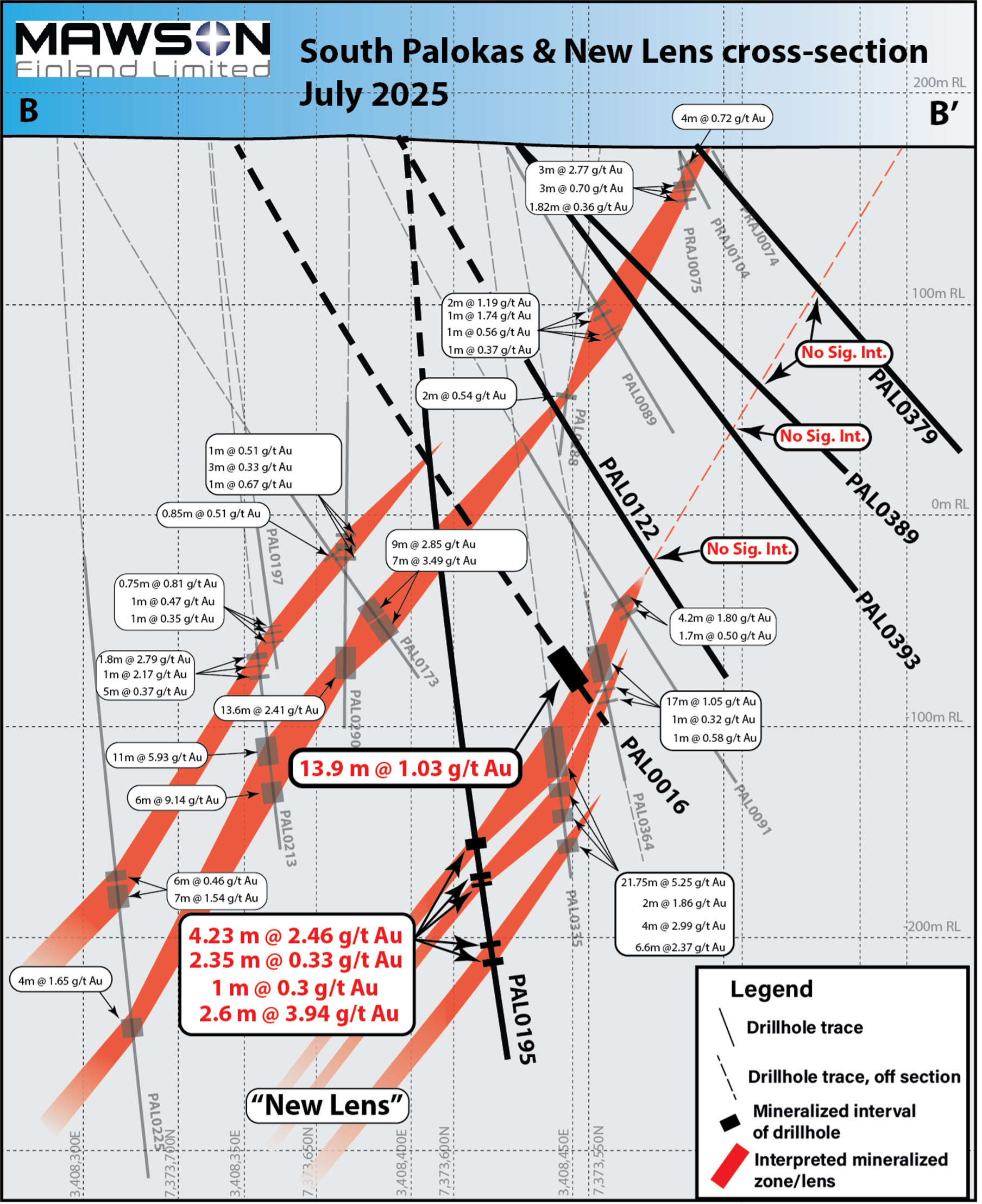 Palokas: Drilling at deep Palokas consisted of 5 holes in total, all targeting down-dip extensions of the Palokas gold-cobalt system. Drillholes PAL0380 and PAL0386 intercepted significant mineralisation, where PAL0380 recorded multiple significant intercepts (recording a best of 6 m @ 1.03 g/t gold; as reported in previous release dated February 11, 2025), and PAL0386 intercepted a single, thinner interval of 1.05 m @ 2.26 g/t Au (cobalt results not yet received).